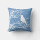 Coussin Oiseau sur une branche, blanc contre bleu ciel