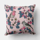 Coussin Oiseaux et fleurs roses