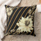 Coussin Or noir rayé avec Rose blanche