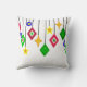 Cet oreiller de lancer a une collection d'ornements accrochés en forme de losange, cercles et étoiles.