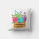 Un bel arrangement floral rose bleu violet vert de fleurs dans un panier sur ce coussin décoratif. Personnalisez-le avec votre nom et l'année de votre mariage. En fait un excellent cadeau d'anniversaire ou de mariage pour eux. Disponible en deux tailles carrées.