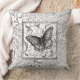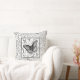coussin décoratif avec le design de l'auteur d'un papillon et d'un motif en gris sur un arrière - plan blanc