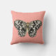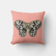 Coussin Papillon noir et blanc, arrière - plan rose corail