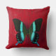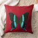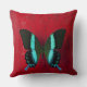 Coussin Papillon noir et bleu sur le mur rouge