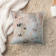 Un coussin vintage renversant dans les roses et les blancs avec le détail bleu gris de papillon