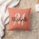 Jetez l'oreiller avec un arrière - plan orange saumon et blanc monogramme personnalisé premier initiale et prénom.