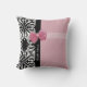 Coussin Paris Damask Pink and Black Chic Bow with Name