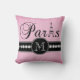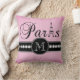 Coussin Paris noir rose Girly décoré d'un monogramme