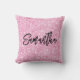 Créez votre propre carré de parties scintillant rose clair faux luxe jetez l'oreiller avec nom ou monogramme. Customisez le style et la taille de la calligraphie de police du script de pinceau noir. Déplacez, dupliquez ou supprimez le faux graphique scintillant.