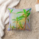 Les oeuvres tropicales aux couleurs pastel de cet Oreiller à Throw ont été réalisées à partir d'une photo originale de ZoeSPEAK. La photo regarde les longues et fines tiges des plantes tandis que la lumière du soleil brille à travers leurs feuilles vert clair. L'arrière - plan bleu clair est teinté de jaune et de rose saumon.