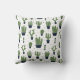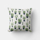 Un coussin avec une saveur occidentale rustique. Conçu avec un tas de cactus verts mignons dans un motif extensible. Plus précisément, des cactus épineux de couleur verte, de toutes sortes de formes et de tailles, chacun assis dans son propre pot de fleurs bleu foncé. Des petits triangles décoratifs entre eux. Illustration de fantaisie.