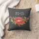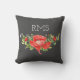 Coussin Pavot rouge sur gris Monogramme personnalisable