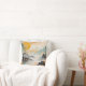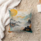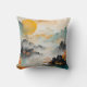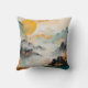 Un paysage très abstrait qui laisse entrevoir montagnes, eau, arbres et ciel en pêche, gris et or crée une belle, harmonieuse conception wabi-sabi sur cet oreiller de lancer.