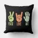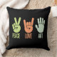 Cet oreiller de lancer audacieux et moderne présente trois signes emblématiques : le signe de paix, le geste de la main de l'amour et une paume ouverte symbolisant l'art. Avec des tons pastel doux de vert, d'orange et de crème contre un arrière - plan noir, ce design livre un message simple mais puissant : Paix, Amour, Art. Parfait pour les artistes, les créatifs et les esprits libres qui veulent apporter positivité et inspiration dans leur espace. Un accent élégant pour les studios, les chambres ou les salons, et un cadeau bien pensé pour les amateurs d'art.