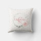 Adorable petite fille douce et doucement coussin dans rose rousse, rose poussiéreux, feuilles gris clair vert et blanc avec pois. Courbe florale d'aquarelle peinte avec monogramme, nom et date de naissance de l'option. Un cadeau parfait pour les nouveau-nés, les baby showers, les anniversaires...Un joli décor personnalisé pour la pépinière! C'est un grand gardien !