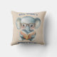 Coussin Personalized Teacher Watercolor Elephant Reading