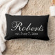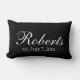 Jolis et élégants carreaux personnalisés avec le nom de famille et la date de votre choix. Changez la couleur d'arrière - plan ou laissez-la noire. Un coussin fait sur commande de lancer pour ajouter un contact personnel à toute pièce.