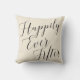 Un beau cadeau personnalisé pour les jeunes mariés, ce coussin moderne de style de calligraphie comporte "heureusement pour toujours" dans par brosse la typographie marquée avec des lettres sur l'avant, et les noms customisés et la date de mariage du couple heureux sur le dos. Un beau souvenir qu'ils priseront.