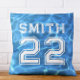 Ajoutez un monogramme ou un nom pour créer votre propre coussin photo de piscine pour votre nageur préféré. Créez un cadeau sympathique pour un entraîneur ou un membre de l'équipe. Photo de lumière jouant au fond d'une piscine numériquement teintée de bleu vif.