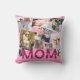 Faites savoir à maman combien elle est aimée avec ce coussin photo-collage moderne, avec dix (10) photos de votre choix qui peut être facilement téléchargé de votre téléphone ou ordinateur sur un arrière - plan à la mode rose girly, le texte - MOM dans la couleur rose luxuriante en gras texte avec élégante calligraphie blanche script tyopgraphie 'we love you' sur le dessus. Personnalisez en ajoutant des noms. Le revers est décoré d'élégantes étoiles roses et blanches. Ce coussin est le cadeau parfait pour garder un souvenir des enfants pour les anniversaires, la fête des mères ou Noël.
