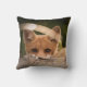 Un coussin avec une photo de chéri montrant un petit renard orange qui vous regarde derrière une sortie dans le désert.