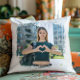 Créez votre propre oreiller à lancer photo de famille. La photo recouvre la forme d'un carré de brosse grunge. Ajoutez du texte pour créer un cadeau personnalisé.