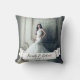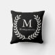 Téléchargez votre photo de mariage ou de famille sur cet oreiller de lancer avec un ruban blanc recouvert du nom du couple et la date du mariage en noir. Le dos a des lauriers blancs encadrant votre lettre monogramme de famille et le nom complet sur un arrière - plan noir.