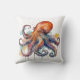 Coussin pieuvre colorée en aquarelle grands yeux