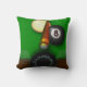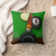 Une conception d'amusement pour ceux qui comme un jeu des billards. Comportant une queue, la boule blanche et la boule huit sur la table, si jouant pour l'amusement ou dans un tournoi d'équipe vous étirerez les points avec cette conception de coussin personnalisée par cool.