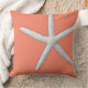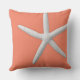 Ce coussin moderne de corail côtier présente une étoile de mer blanche tropicale et convient parfaitement à la maison de plage, au chalet de plage, au décor nautique, côtier ou à la décoration de la maison sur le thème de la plage, ou si vous vivez près de l'océan. Photographie du corail et du dessin © par TK Goforth, tous droits réservés.