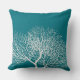 Ce coussin moderne côtier bleu turquoise et profond est orné de corail tropical d'arbre de mer blanc sur un arrière - plan bleu profond et turquoise. Il est parfait pour la maison de plage, le cottage de plage, ou pour le décor marin, côtier ou sur le thème de la plage, ou si vous vivez près de l'océan. Photographie du corail et du dessin © par TK Goforth, tous droits réservés.