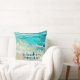 Ajoutez une ambiance de plage à votre maison avec ce confortable oreiller côtier en coton avec aquarelle tropicale turquoise et mousse de mer vagues de l'océan, l'étoile de corail et "la plage est mon endroit heureux" typographie dans un bleu marine nautique. Art par KL Stock