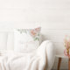 Ce coussin à mariage floral romantique dispose d'un arrière - plan blanc élégant et simple avec pêche à l'aquarelle et fleurs blanches. Un bouquet délicat est représenté sur le dessus. Des exemples de noms de couple sont imprimés ci-dessous dans une police de script élégante.