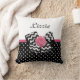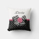 Coussin Points noirs mignons Rose rose Chevron Bow et nom