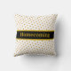 Chic lancer oreiller avec de beaux pois dorés à look métallique sur arrière - plan noir et blanc. Le Homecoming peut être personnalisé. La maison et la famille sont notre véritable trésor !