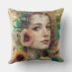 Coussin Portrait Abstrait de femme de fleurs