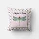 Coussin Pot rose et vert Polka et monogramme de libellule