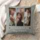 Personnalisez une tenue unique pour une nouvelle maman célébrant sa première fête des mères avec cet oreiller vert sauge trois photo collage jetez. Le design coussin comprend trois placements photo en panneau avec typographie moderne et écriture élégante et deux coeurs rouges. Un souvenir photo parfait pour que maman fête sa première fête des mères.