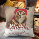 Premier Noël Chiot Photo White Stars Coussin. Un nom de chien personnalisé dans un script branché et des étoiles blanches superposent la photo. Personnalisez le coussin avec la photo, le nom et l'année de naissance de votre chien - insérez votre photo de chiot préférée. Vous pouvez utiliser ce coussin personnalisé pour n'importe quel animal de compagnie. Une belle tenue de vacances pour un propriétaire de chien.