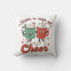 Style rétro Noël Jeter oreiller dispose de deux tasses de chocolat chaud complet avec crème fouettée et bâtons de sucre de canne avec texte rétro qui dit Avoir une Coupe de Cheer sur le devant, Ho Ho Ho sur le dos.