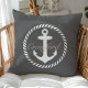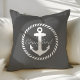 Coussin Preppy gris foncé et blanc Ancre nautique Monogram