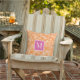 Coussin Preppy Square Lattice Monogram Hot Pink & Orange