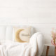 Elegant Ramadan Kareem decorative cushion featuring a luxurious gold crescent moon on a soft light beige background. This Islamic throw pillow design adds a warm and peaceful Ramadan atmosphere to any living room, sofa, or prayer space. Perfect as a Ramadan home decor accent or a thoughtful Islamic gift for family and friends during the holy month.