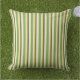Des coussins d'extérieur dans un motif classique de William Morris. Voici une rayure coordonnée en moutarde, vert et crème.