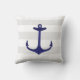 Coussin Rayures nautiques de blanc gris d'Ancre de bleu