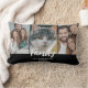 Moderne 3 photo collage lumbar coussin avec nom de famille et année. Trendy, amusant. Facile à modifier le texte.