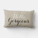 Design chic rustique mais contemporain, avec texte en script noir. Lancer motivationnel oreiller avec les mots "Hello Gorgeous". Un arrière - plan à effet photo en lin beige IMPRIMÉ. Linge De Toilette Incitation Personnalisée - Conseils Positifs - Lancer L'Oreillers - Pour Vos Solutions De Décoration À La Maison. Elke Clarke© Plus de styles et de couleurs disponibles dans notre boutique à www.zazzle.com/monogramgallery. Idéal pour votre chambre, votre chaise préférée, comme décor amusant dans votre chambre familiale ou ajout décoratif formel à votre salon.