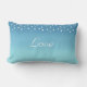 Coussin Rectangle Amour et fleurs sur fond bleu océan