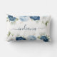 Coussin Rectangle Aquarelle bleu bleu foncé Floral Élégant Monogramm