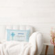 Coussin Rectangle Baptême de garçon en dentelle bleue